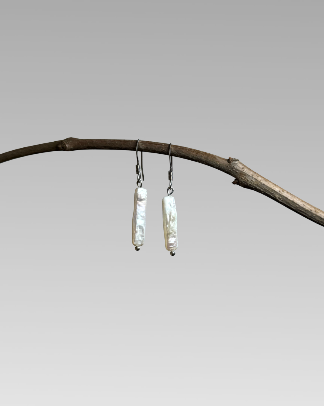 Srebrni uhani iz nerjavečega jekla in sladkovodnimi biseri.